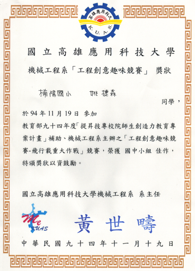 | 參與「工程創意趣味競賽-飛行載重大作戰」 | 高雄應用科技大學 |